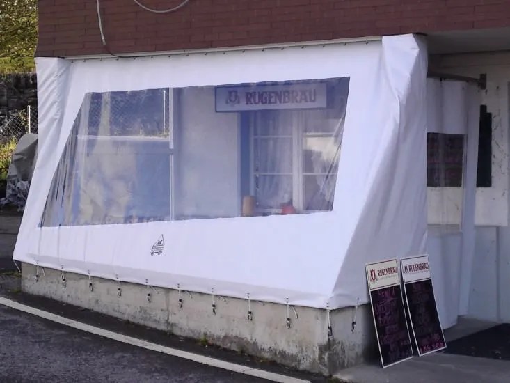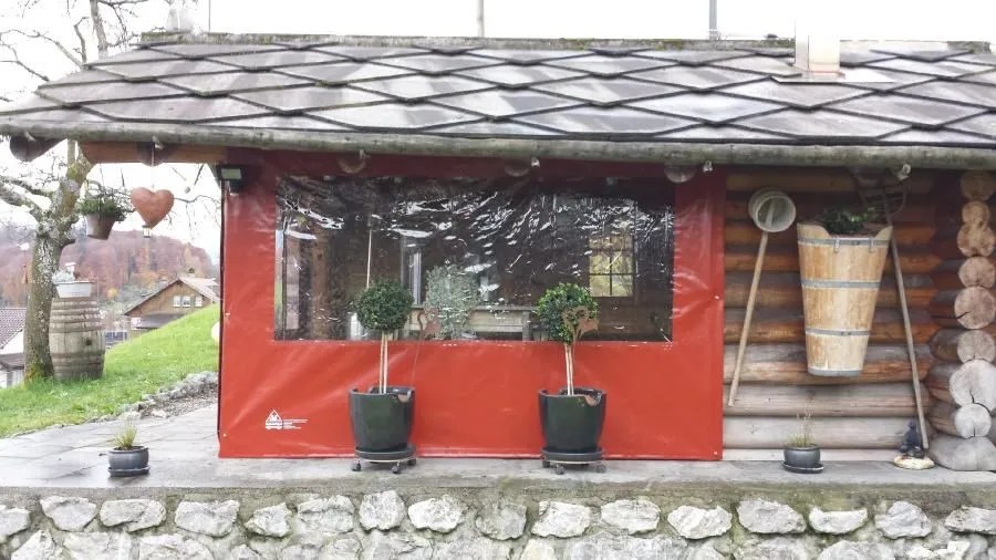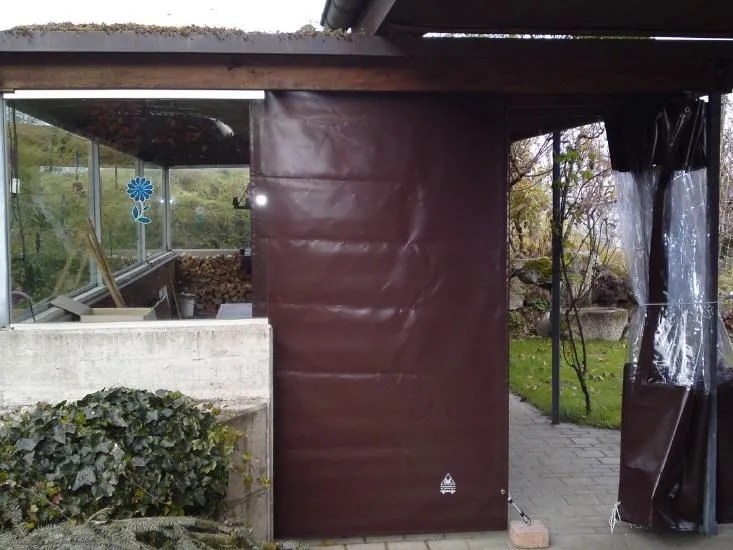 Vielseitig einsetzbar und einfach implementierbar dienen Industrievorhänge auch als Sicht- und Wetterschutz im Aussenbereich, z. B. für Pergolas oder Gartenhäuser.